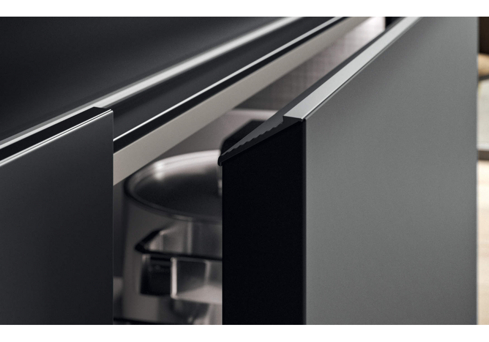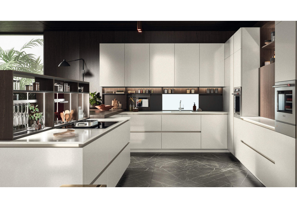 Vision conçue par Andreucci & Hoisl pour Snaidero est une cuisine qui exprime la connexion des espaces. La surface du plateau peut être personnalisée en choisissant la même finition que les portes, permettant à la composition de devenir un tout. L'effet monolithe est esthétiquement pur et met en évidence les lignes géométriques et essentielles, faisant de l'espace le protagoniste d'une succession de pleins et de vides.
