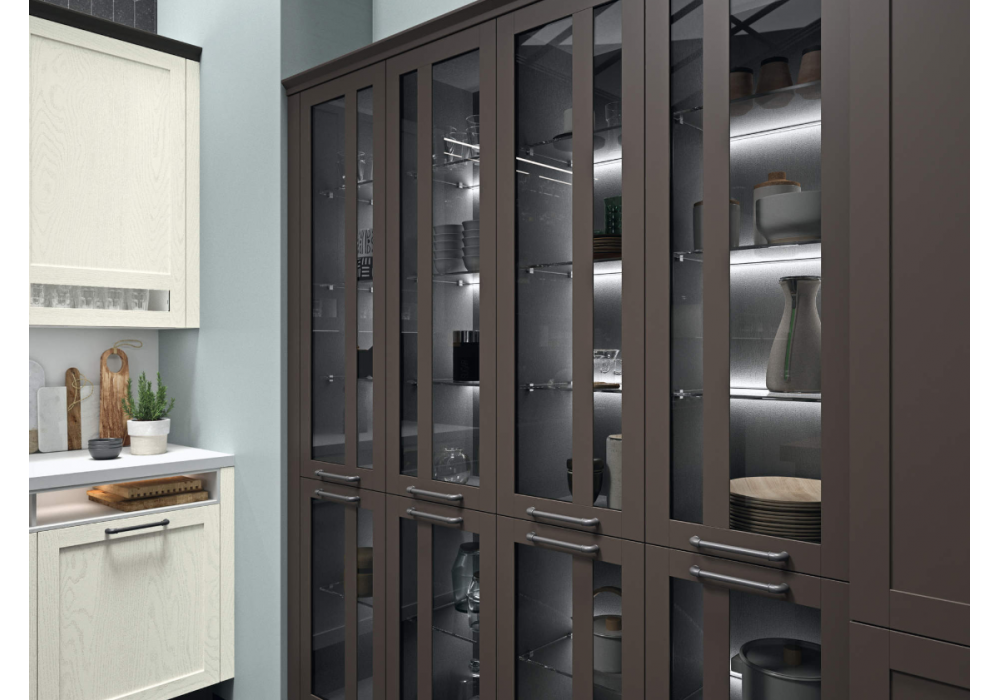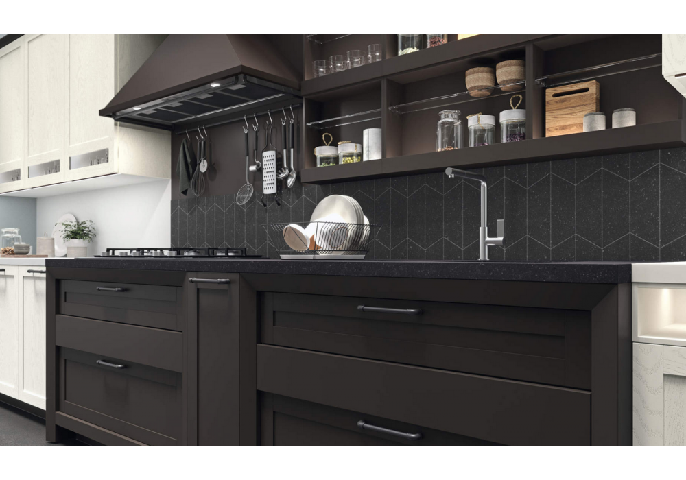 Hera conçue par Michele Marcon pour Snaidero est une cuisine de style campagnard qui donne le meilleur dans des environnements grands et spacieux, où il est possible d'inclure tous les modules qui contribuent le plus à identifier le style : les compartiments ouverts, en particulier, représentent un élément important pour concevoir des espaces de confinement fonctionnels et visibles.