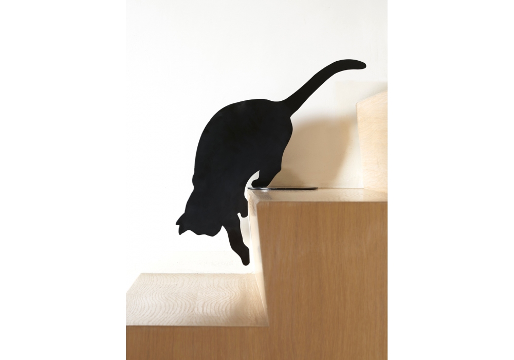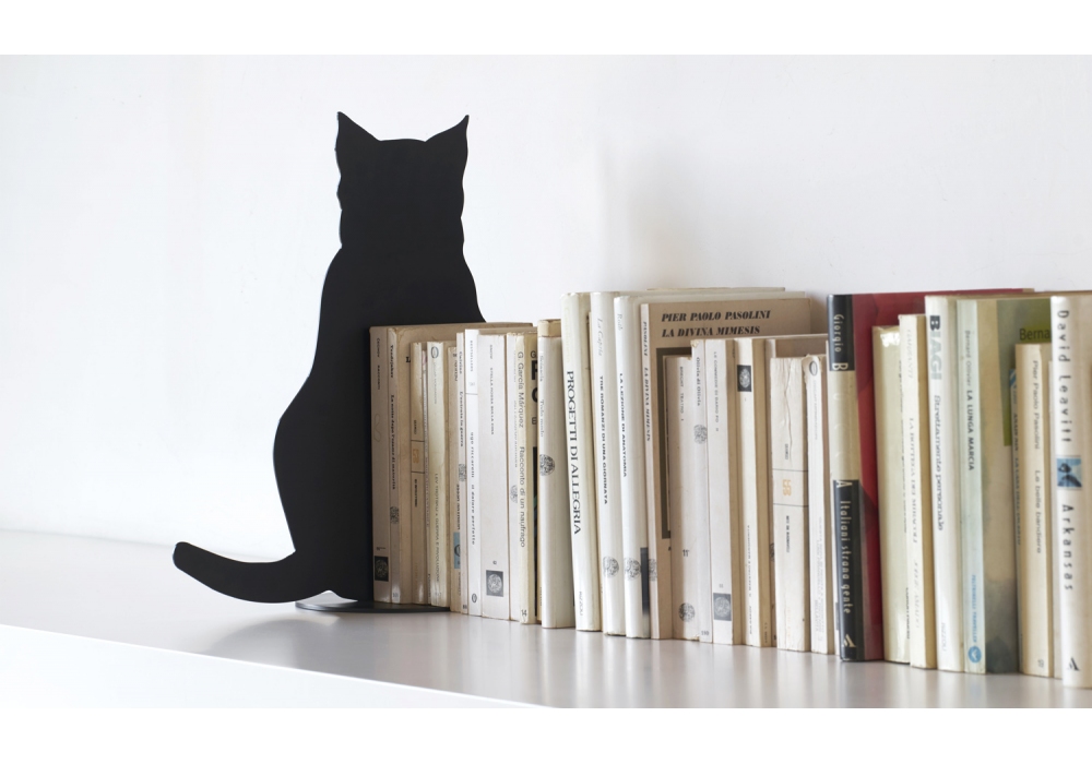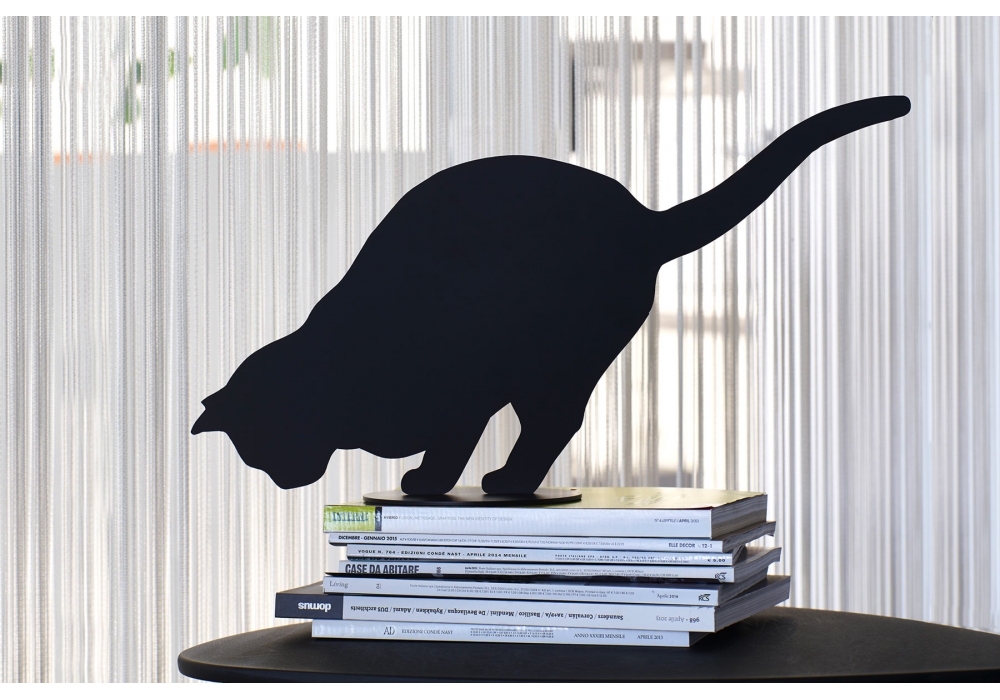 Ombres de Chats conçue par Angelo Barcella Opinion Ciatti est une décoration de table en acier noir qui peut également être utilisée comme serre-livres. Disponible en différents modèles.