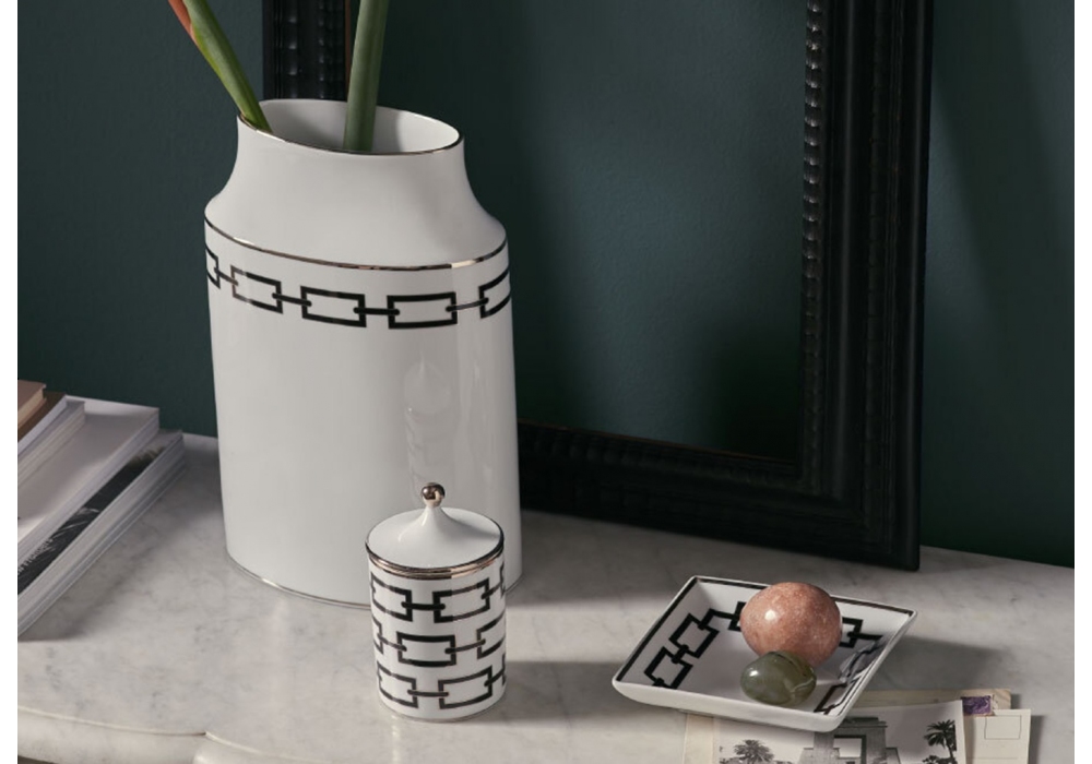 Coppa Quadrata Bassa Catene Nero conçu par Ginori 1735 est un plateau carré bas décoré.
