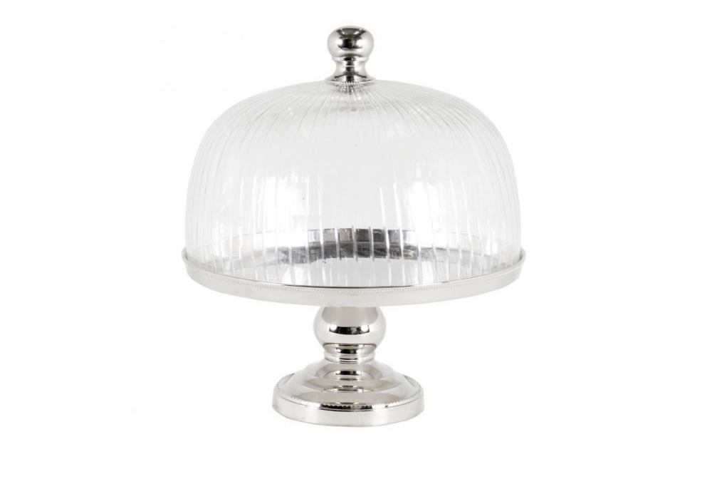 Cake Standard Giorgio conçu par Eichholtz est un Stand de Gâteaux avec une base décorée d'une finition nickel et une splendide cloche en verre transparent.
