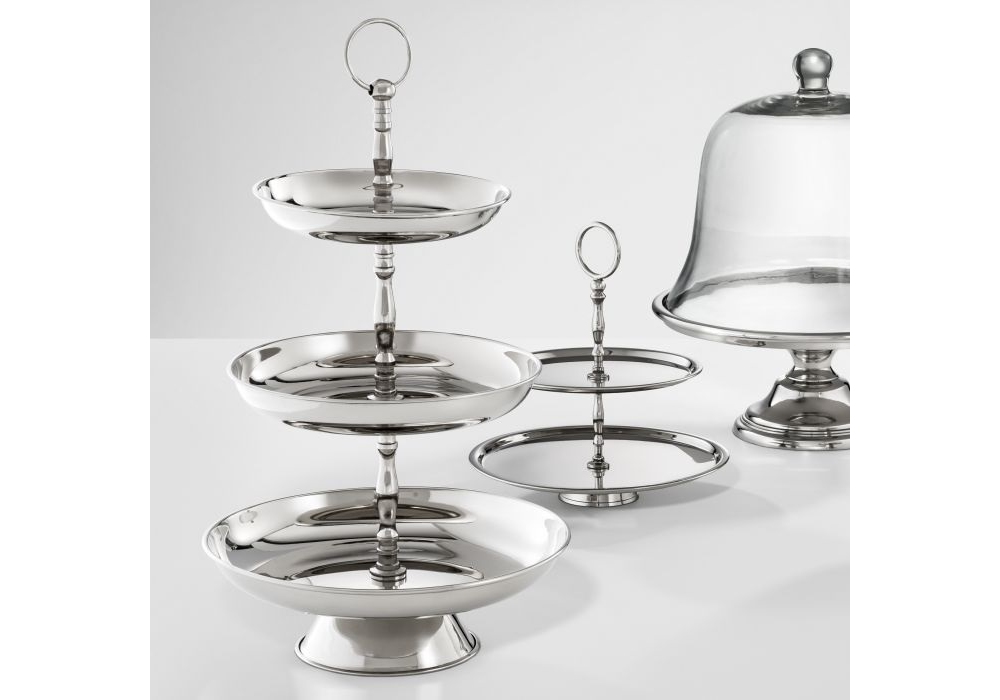 Cake Standard Oriole conçu par Eichholtz est un stand de gâteaux à trois niveaux en acier inoxydable et finition nickel.