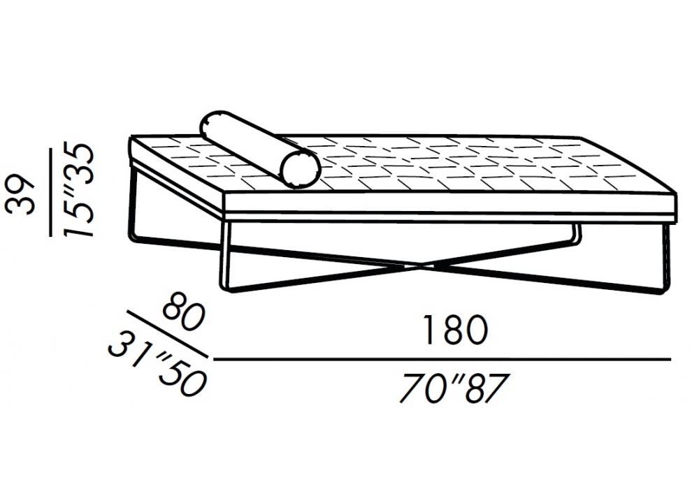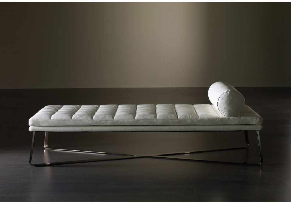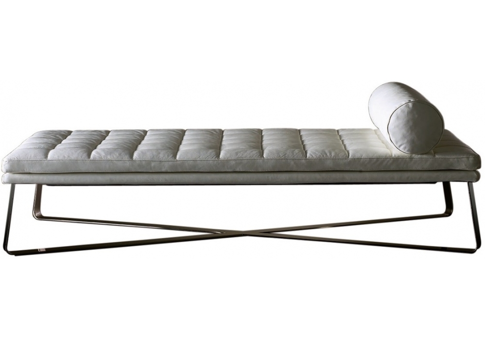 Lolyta designed by Andrea Parisio for Meridiani is a day bed with base in metal with glossy black nickel finish and cushion in polyurethane with fixed quilted cover. Bolster in reinforced feathers. Upholstery available in fabric or leather.
