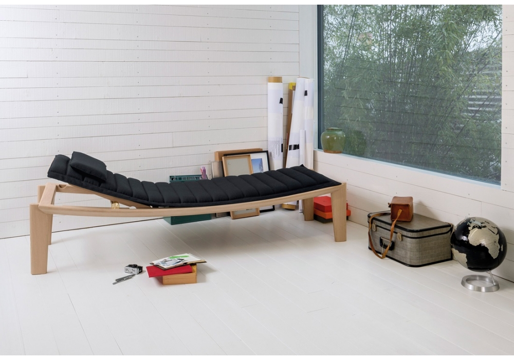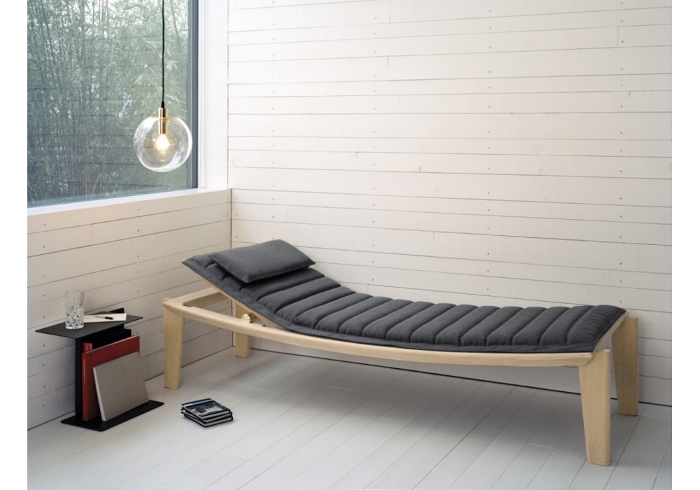Ulisse conçu par Konstantin Grcic pour ClassiCon est une belle chaise longue avec cadre en bois massif, nature ou teinté en noir, laqué transparent. Rembourrage en polyuréthane avec ouate de polyester. Capitonnage en tissu ou en cuir. Fixation du matelas avec des boutons-pression au niveau de la tête réglable et du pied. Tête réglable en hauteur selon trois positions. Patins blancs en plastique antidérapants. Disponible en différentes finitions.