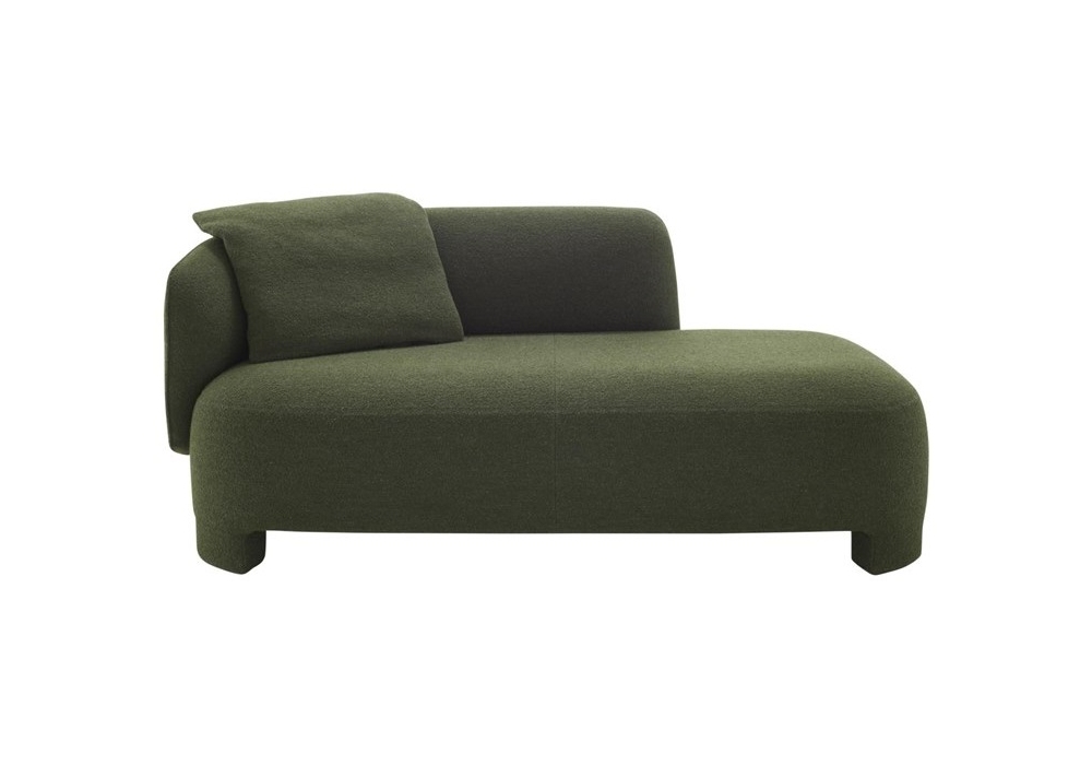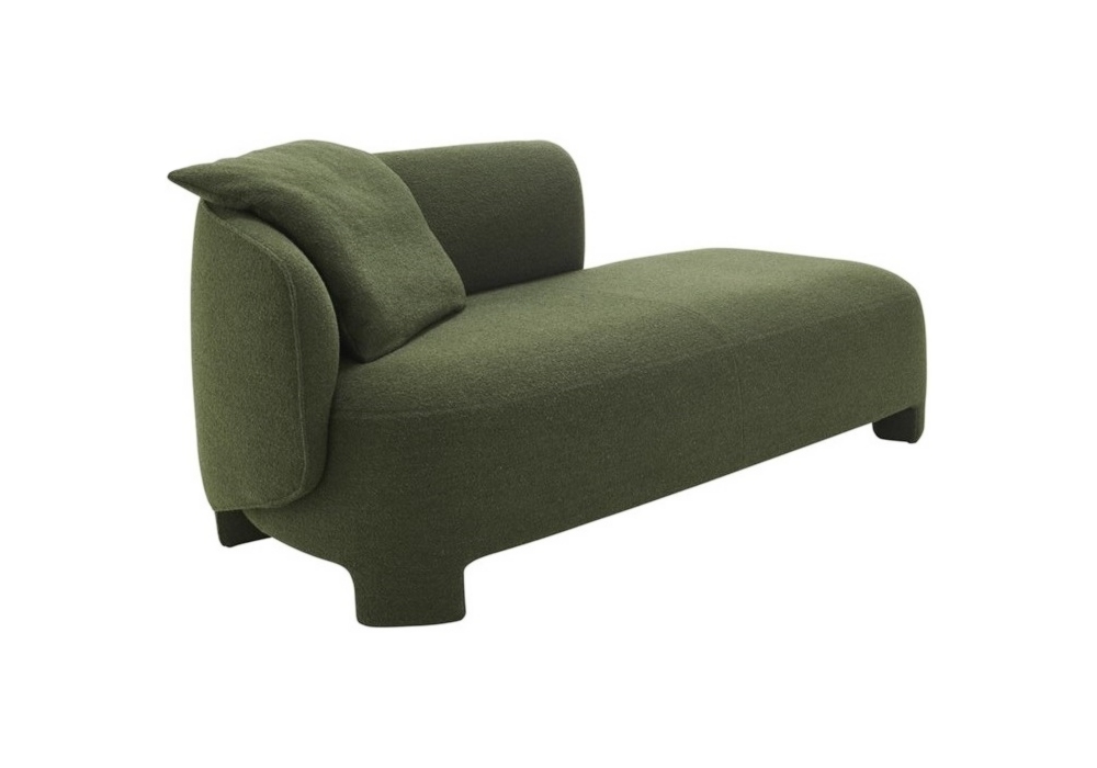 Taru conçue par Sebastian Herkner pour Ligne Roset est une meridienne entièrement tapissée avec assise et dossier intérieur recouverts en tissu; extérieur du dossier en tissu ou cuir. Sur demande, Taru est disponible entièrement tapissée en cuir comme l'extérieur du dossier.
