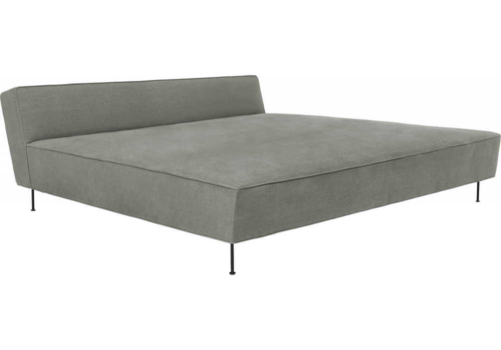 Modern Line conçue par Greta M. Grossman pour Gubi est une méridienne avec structure en pin massif, contreplaqué et ressorts; La base est composée de pieds en laiton ou en acier noir. Le lit de repos est disponible avec un revêtement en tissu ou en cuir.
