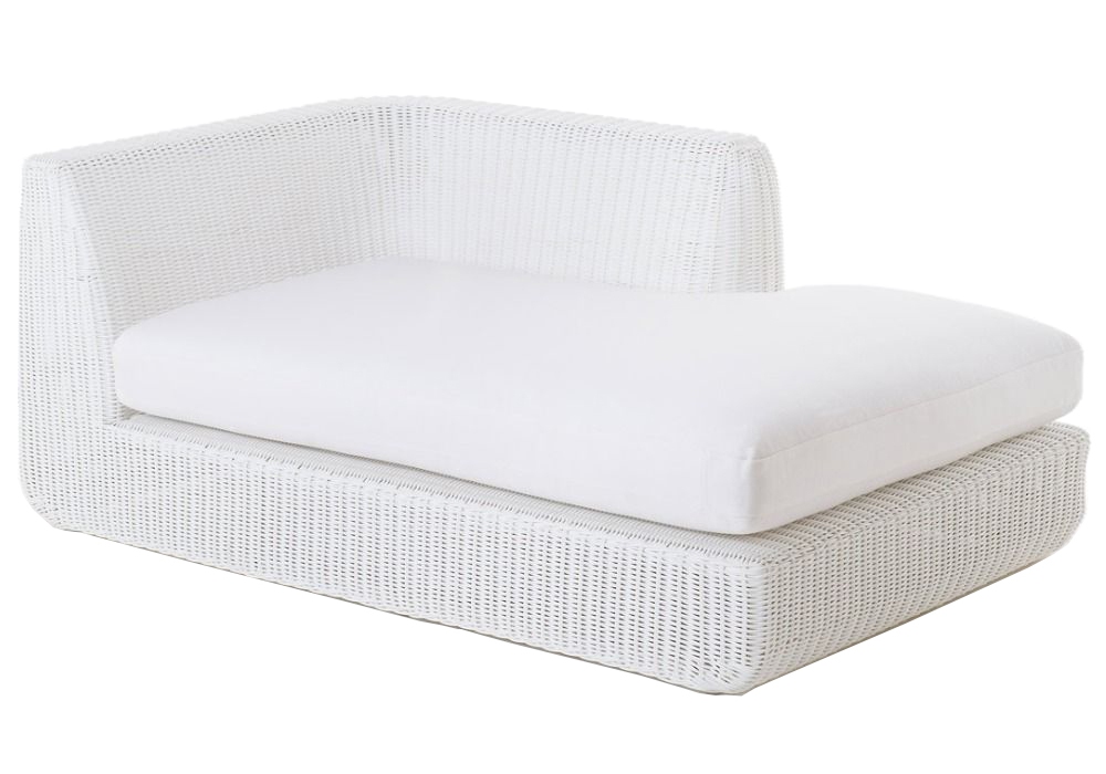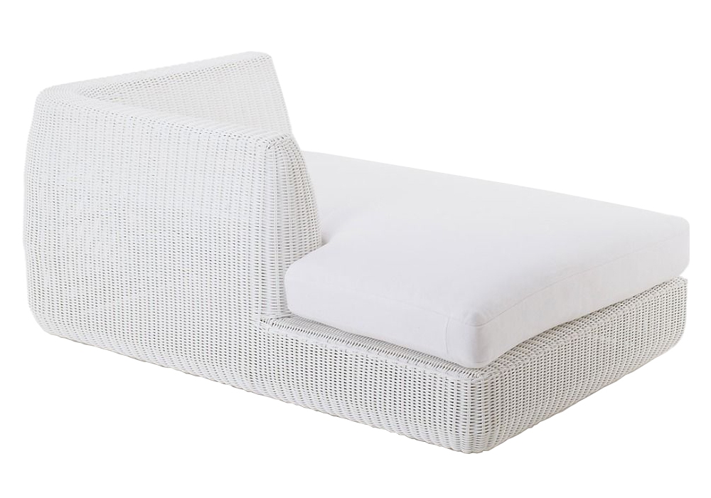 Agorà produit et signé par Unopiù est une méridienne avec structure en aluminium et coque en fibre synthétique waprolace tissée à la main. Les coussins sont recouverts de tissu acrylique de différentes couleurs. Agorà est disponible en différentes finitions.