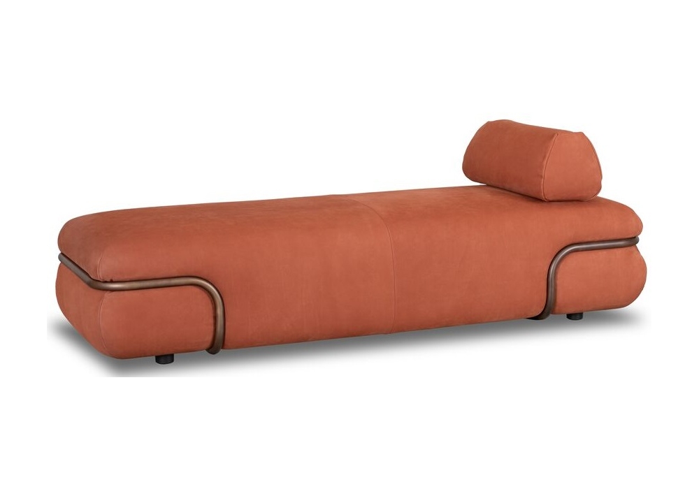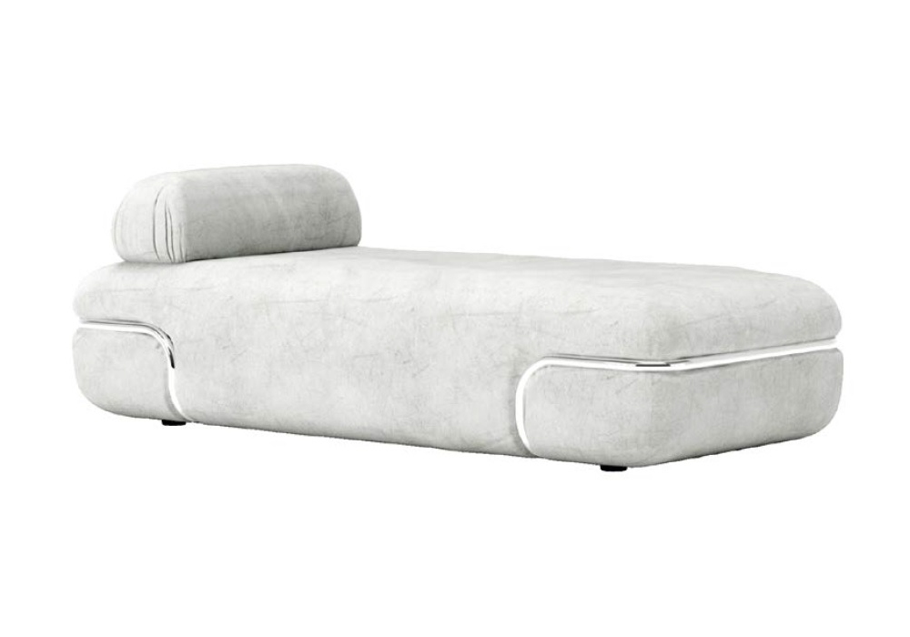 So Soft conçue par Studiopepe pour Baxter est une dormeuse avec structure en contreplaqué en bois de sapin et peuplier. Rembourrage en mousse de polyuréthane à densité différenciée avec revêtement en fibre acrylique. Tubulaires décoratifs en métal avec finition au choix et coussin de dossier avec contrepoids en option. Revêtement en cuirs souples uniquement.