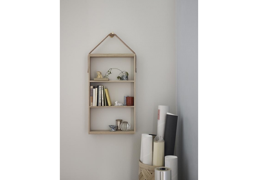 Norr conçue par Ditte Buus Nielsen pour Skagerak est une étagère en chêne, parties en cuir et détails en laiton.