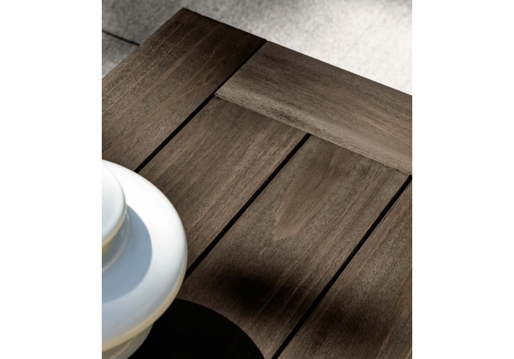 Argo Wood conçue par Ludovica + Roberto Palomba pour Talenti est une table d'extérieur réalisée avec une structure en bois accoya dans les couleurs palissandre ou teck naturel. Disponible en plusieurs dimensions.