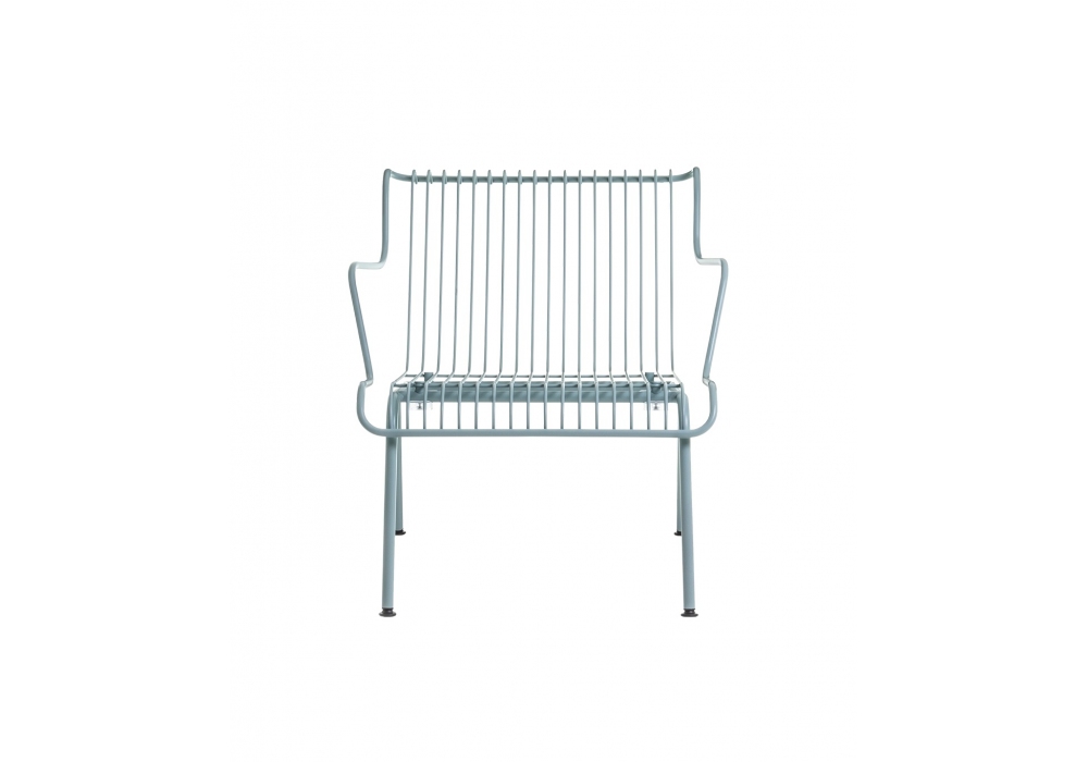 South conçu par Konstantin Grcic pour Magis est un fauteuil bas réalisé en tube et tige d'acier traité par cataphorèse et peint en polyester. Pieds réglables. Possibilité d'ajouter des nattes tissées.
