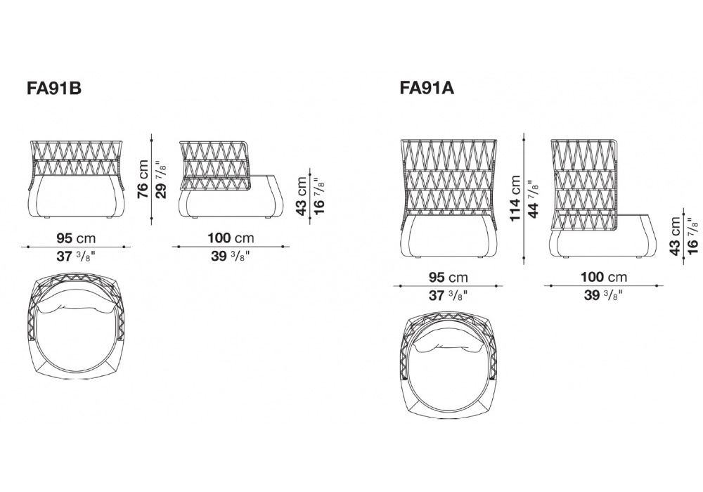 | Dimensions | 95 x 100 x H 76 cm; 95 x 100 x H 114 cm. |