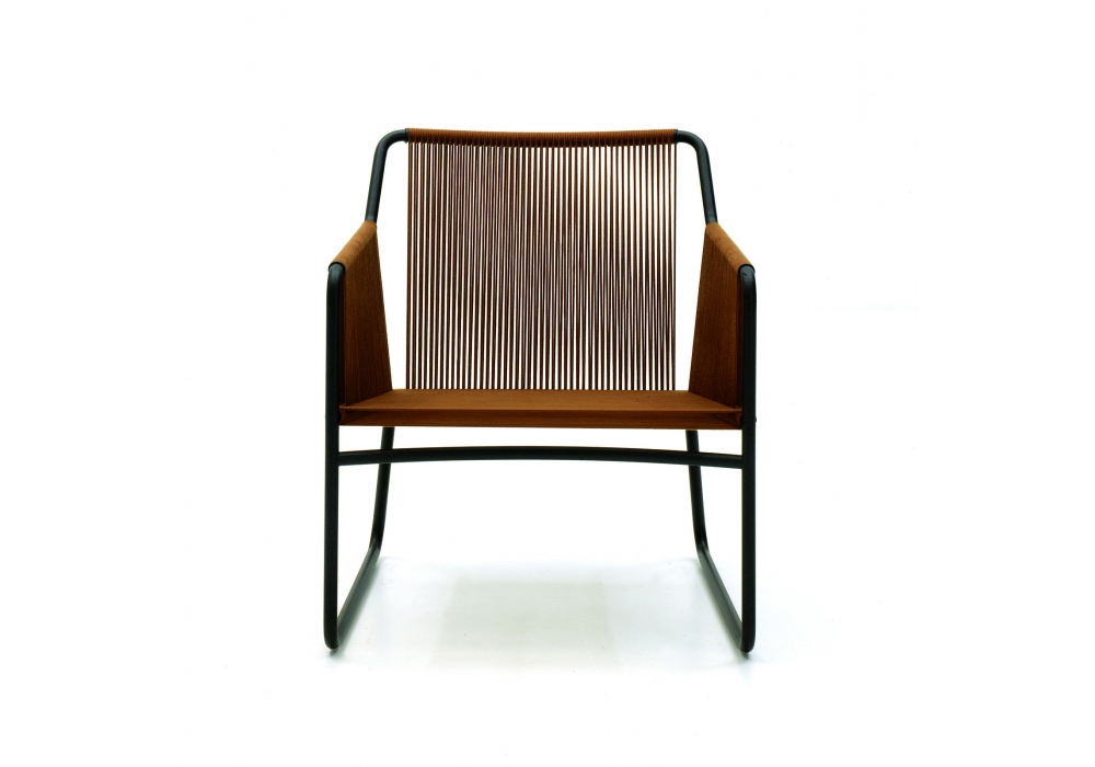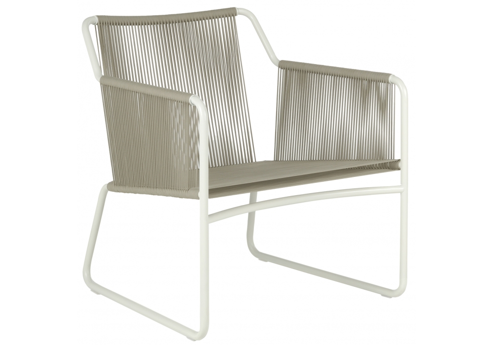 Harp 368 is an outdoor lounge chair designed by Rodolfo Dordoni for Roda. The classic string chair finds a new outdoor dimension, where polyester trails its infinite filaments around a tubular stainless steel structure in one continuous outline. Harp is a celebration of a craft manufacturing: a never-ending weave of cords that twine the stainless steel frame drawing lines that look continuous to the human eye. The structure, made in painted stainless steel welded by hand, and the cords, in a double polyester twisted thread with a cotton finishing, is available in milk/sand, smoke/grey, carob/tobacco, smokeolive, milkolive.