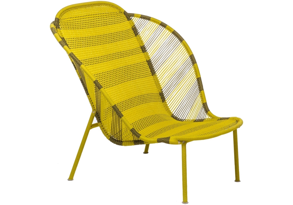 Imba conçu par Federica Capitani pour Moroso est un fauteuil avec structure en acier peint et fils de polyéthylène colorés tissés à la main. Semelles intérieures en PVC.