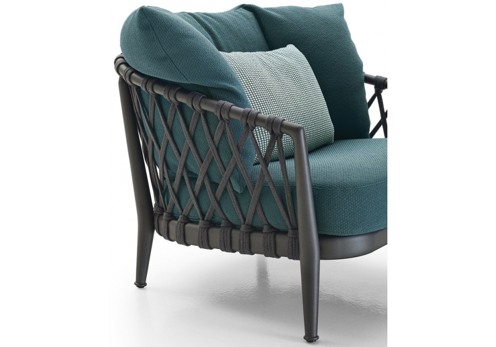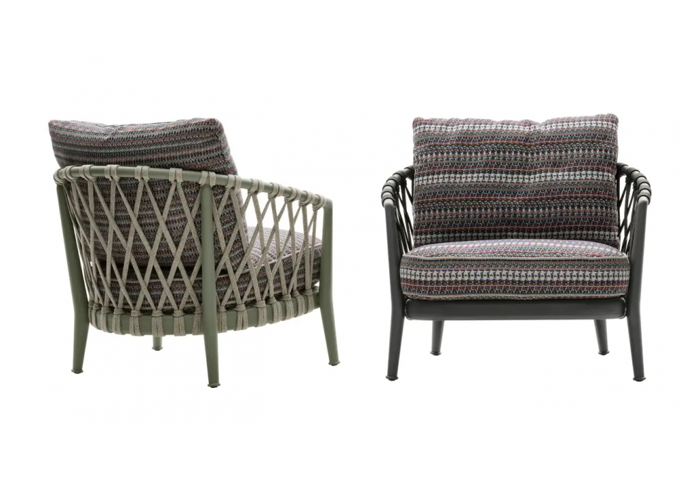 Erica conçu par Antonio Citterio pour B&B Italia est un fauteuil avec structure en aluminium et tissage en fibre de polypropylène assorti. Revêtement en différents tissus.