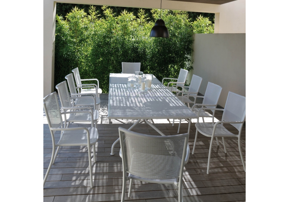 Athena conçu par Emu est un beau petit fauteuil avec un design classique pour une atmosphère amicale, toujours élégante. Il est marqué par un motif ornemental distinctif en tôle tissée qui confère élégance et caractère à la collection. La collection Athena propose des ensembles complets de chaises, de tables et de meubles de salon pour des moments de détente en plein air. Des formes douces et courbes de chaises et de chaises longues se fondent avec grâce et élégance équilibrée. Disponible en différentes couleurs.