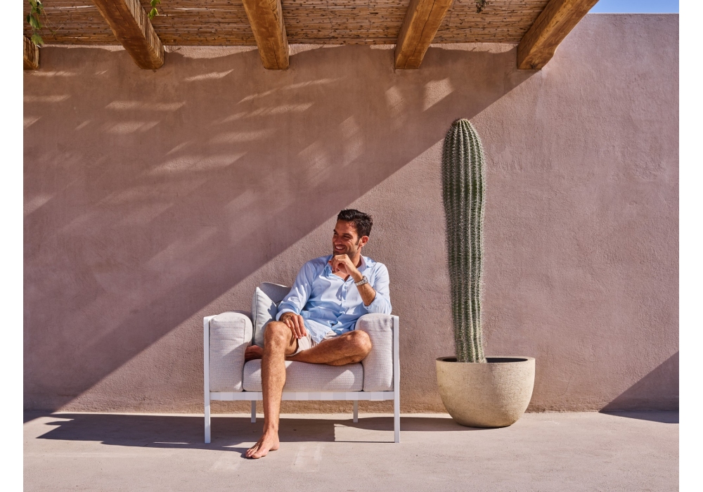 Natal Alu conçu par Studio Segers pour Tribù est un fauteuil avec structure en aluminium enduit de poudre d'une laque résistante aux UV et aux rayures, en différentes couleurs. La structure en aluminium est recouverte d'un tissage de larges bandes de textilène. Les coussins d'assise et de dossier sont rembourrés et recouverts de divers tissus imperméables. Sur demande, il est possible d'ajouter un coussin lombaire supplémentaire.