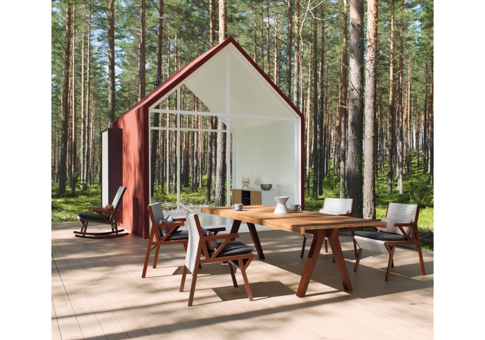 Vieques conçu par Patricia Urquiola pour Kettal est un fauteuil à manger caractérisé par la combinaison d'une structure en aluminium avec un révolutionnaire tissu tridimensionnel par des caractéristiques techniques exceptionnelles, créé spécialement pour cette collection et exclusivement pour Kettal.