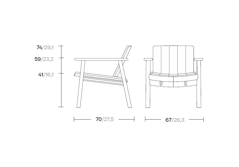 Riva, conçu par Jasper Morrison pour Kettal, est un fauteuil club avec une structure entièrement réalisée en bois de teck. Les coussins d'assise et de dossier sont rembourrés et revêtus de tissu disponible en différentes finitions.