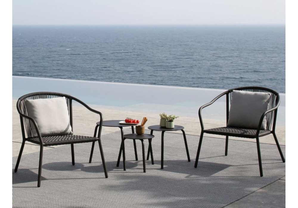 Samba conçu par Kris Van Puyvelde pour Royal Botania est un fauteuil avec structure en aluminium. Revêtement d'assise et dossier en fibre tissée.