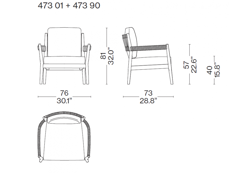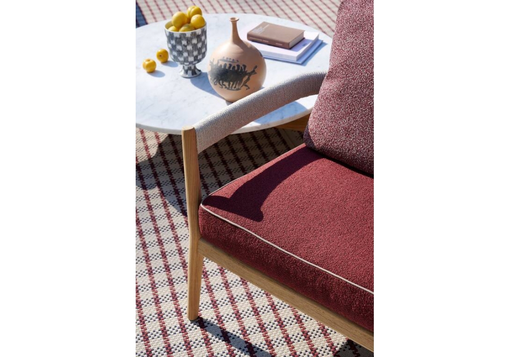 Dine Out conçu par Rodolfo Dordoni pour Cassina est un fauteuil d'extérieur réalisé avec des accoudoirs et un dossier suspendus en corde d'Orbettino et une structure en teck massif naturel. Rembourrage en tissu dans différentes finitions. Coussin d'assise avec profil en gros-grain gris contrasté.