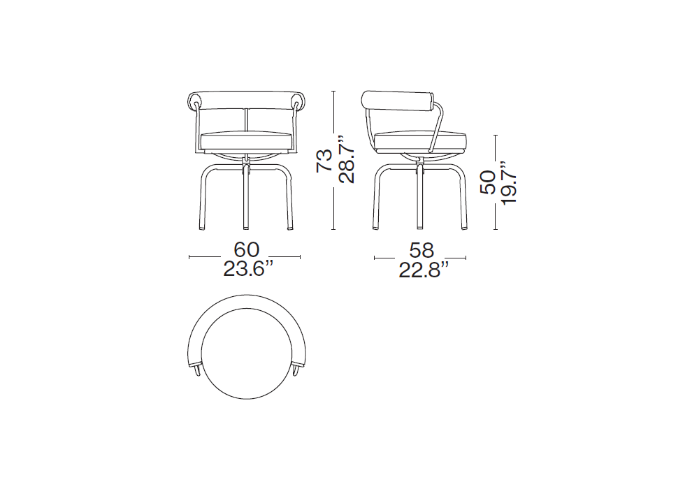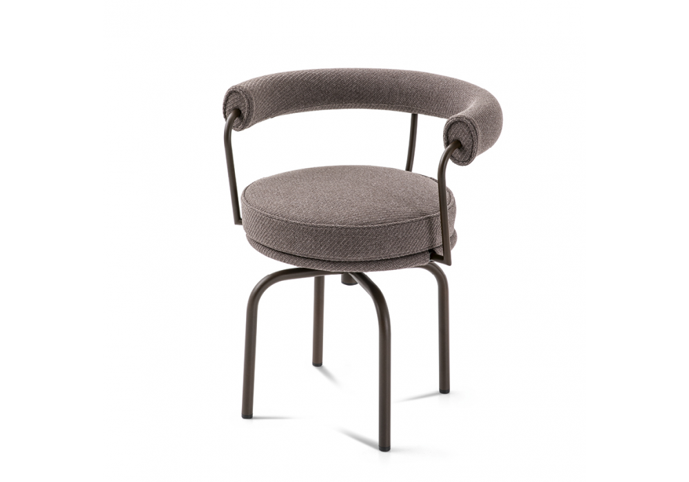 7 Fauteuil Tournant, Outdoor conçu par Le Corbusier, Pierre Jeanneret, Charlotte Perriand pour Cassina est un petit fauteuil pivotant d'extérieur avec structure peinte, assise et dossier en tissu disponible en différentes finitions.