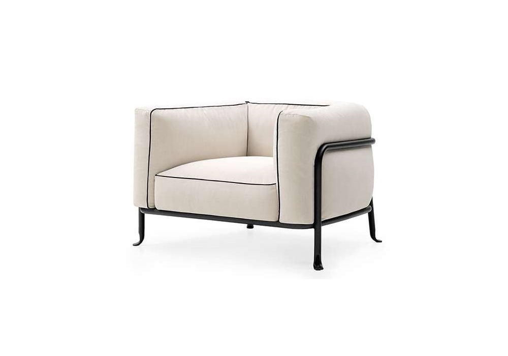 Borea conçu par Piero Lissoni pour B&B Italia Outdoor est un fauteuil avec revêtement en tissu, structure en tôle tubulaire et aluminium. Rembourrage en polyuréthane moulé de densité différente, fibre de polyester.