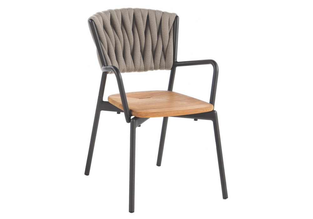 Piper 221 conçu par Rodolfo Dordoni pour Roda est un petit fauteuil d'extérieur réalisé en tube d'aluminium thermolaqué. Dossier rembourré avec ceinture rembourrée et assise en teck ou en résine polyuréthane.