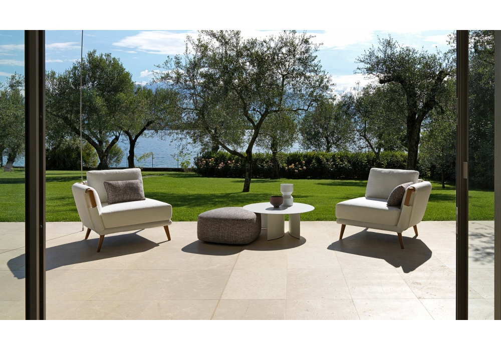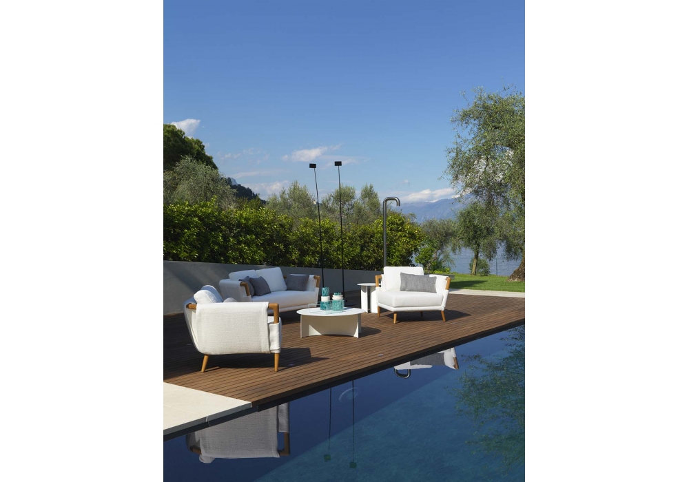 Gaudì Outdoor conçu par Matteo Nunziati pour Flou est un fauteuil version outdoor pour espaces couverts, disponible en deux modèles. Structure en bois Iroko. Revêtement entièrement déhoussable en tissu ou en éco-cuir.