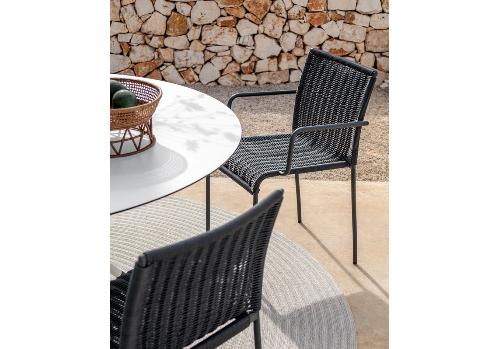 Agra conçu par Enrico Franzolini pour Potocco est un fauteuil d'extérieur entièrement structuré en métal peint en différentes finitions. L'assise et le dossier sont recouverts d'un tissage de chanvre, PVC ou corde synthétique de différentes couleurs.