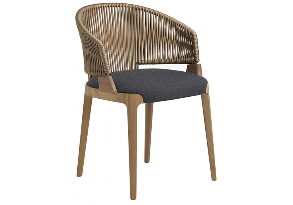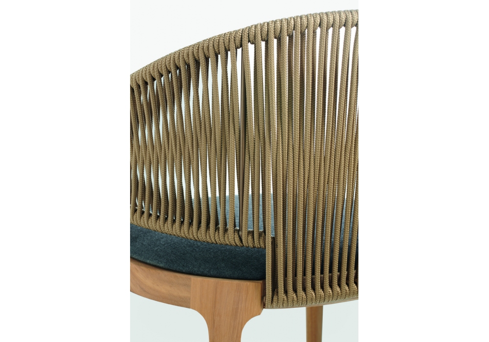 Velis PAR conçu par Mario Ferrarini pour Potocco est un fauteuil d'extérieur avec structure en bois massif d'Iroko. Le dossier est en métal peint et tissé avec de la corde gazeuse ou de chanvre. Le siège est rembourré de mousse de polyuréthane ignifuge et est recouvert de différents types de tissus d'extérieur.