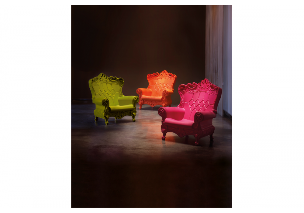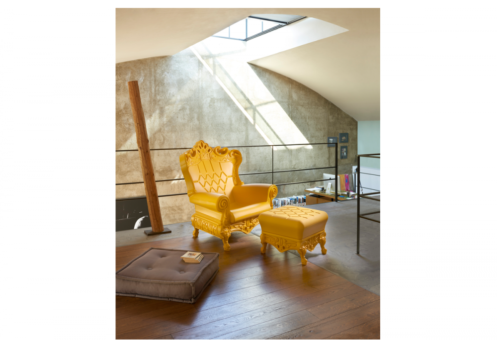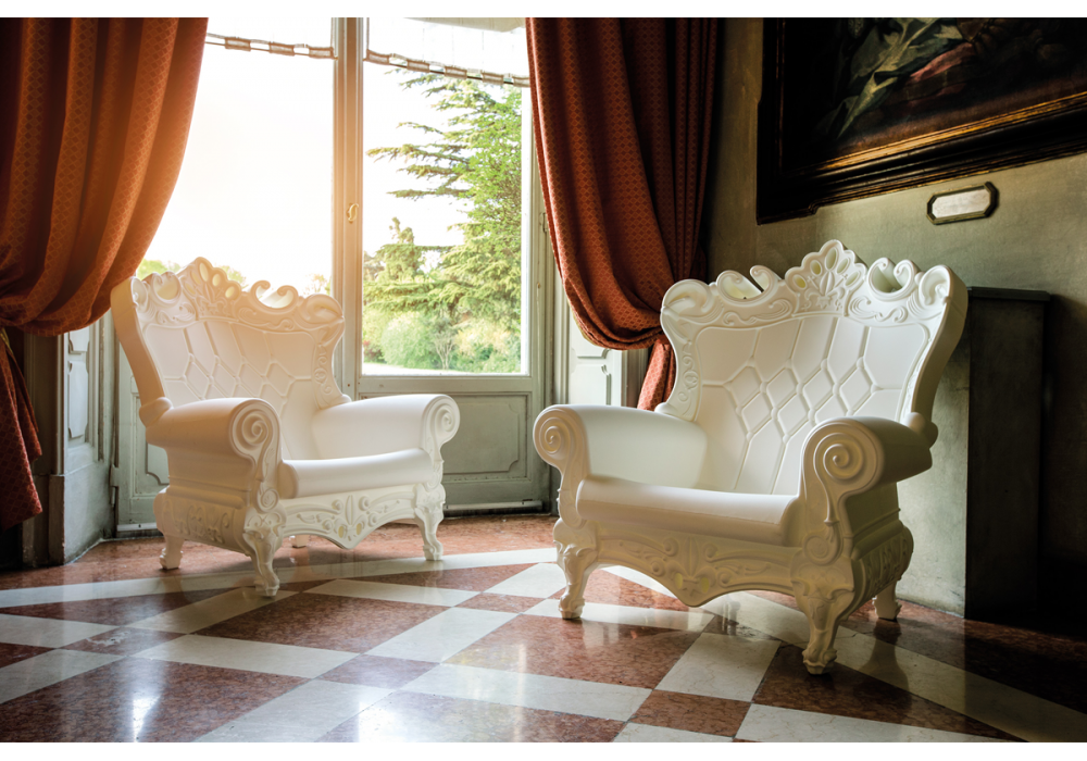 Little Queen of Love conçu par Graziano Moro & Renato Pigatti pour Slide est un fauteuil caractérisé par des détails et des finitions de style rococo. Disponible en différentes finitions