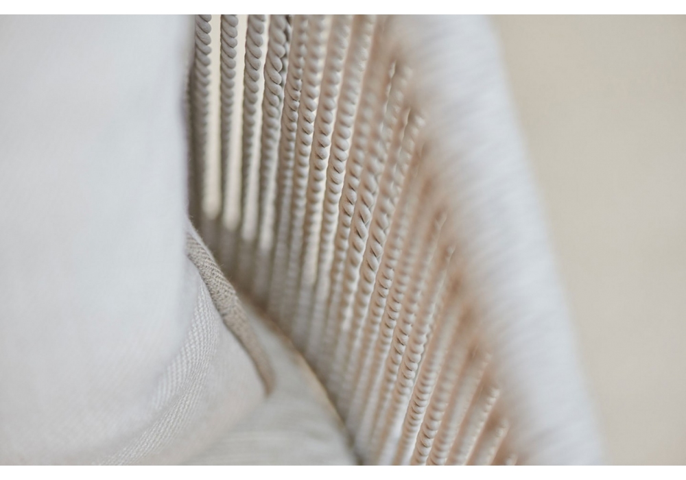 Senja conçu par Studio Segers pour Tribù est un fauteuil avec dossier en Canax couleur lin, pieds en aluminium thermolaqué ou en teck et coque d'assise en aluminium peint. Rembourrage des coussins d'assise et de dossier disponibles en différentes couleurs.
