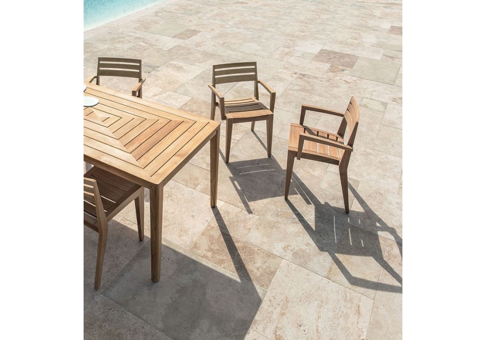 Ribot conçu par Marc Sadler pour Ethimo est un fauteuil avec structure portante en bois de teck naturel. Les coussins de siège sont recouverts d'un matériau acrylique hydrofuge et ne sont pas disponibles dans différentes finitions.