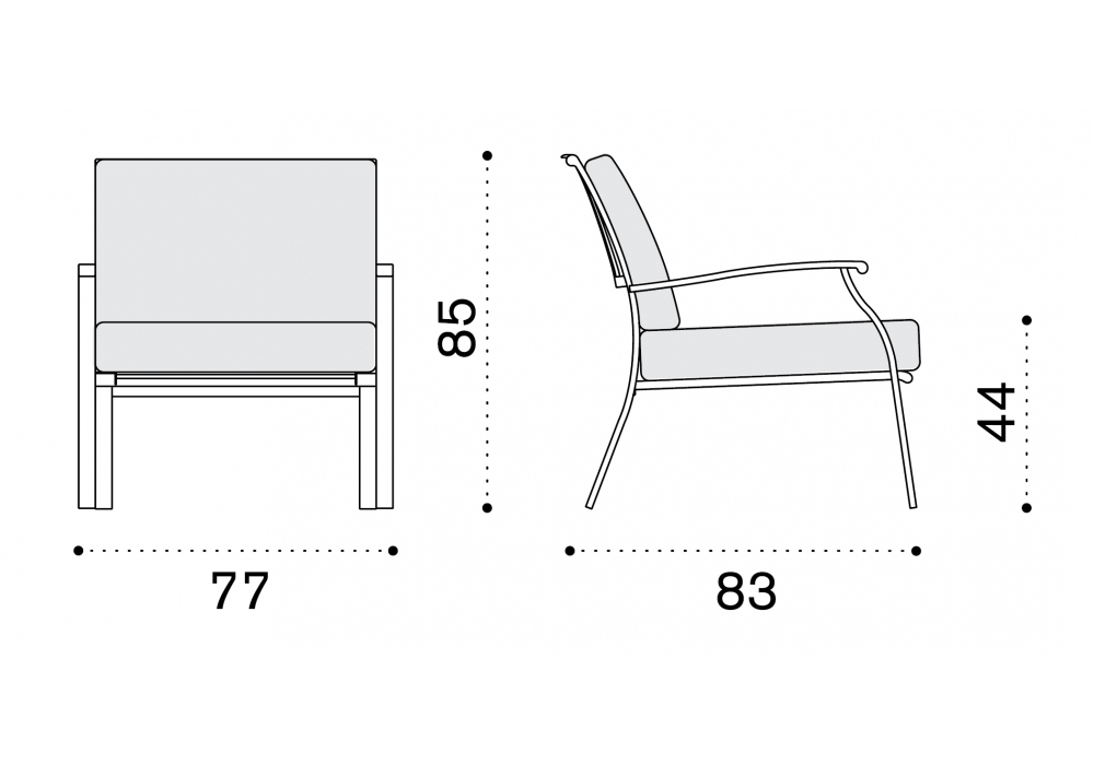 Elisir produit et signé par Ethimo est un fauteuil avec structure portante en métal peint. Les coussins sont recouverts de tissu acrylique hydrofuge. Elisir est disponible en différentes finitions.