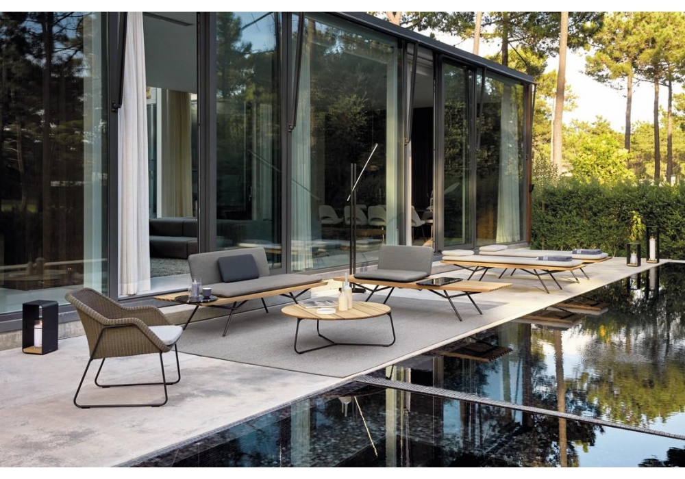 Mood conçu par Gerd Couckhuyt pour Manutti est un fauteuil avec structure en acier inoxydable électropoli ESS et résine tressée. Disponible en différentes finitions.