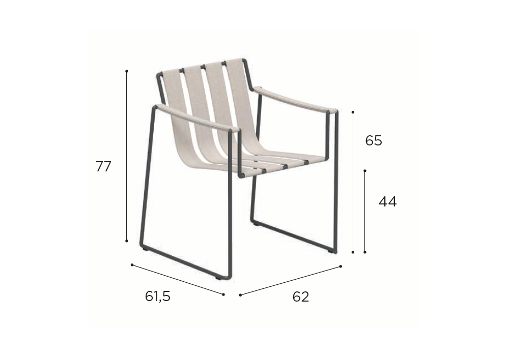 Strappy conçu par Kris Van Puyvelde pour Royal Botania est un fauteuil d'extérieur avec structure en acier inoxydable peint et se caractérise par un tube continu qui se développe en une structure minimaliste, fonctionnelle et empilable à laquelle les sangles rembourrées et les accoudoirs sont fixés. Disponible en différentes finitions.