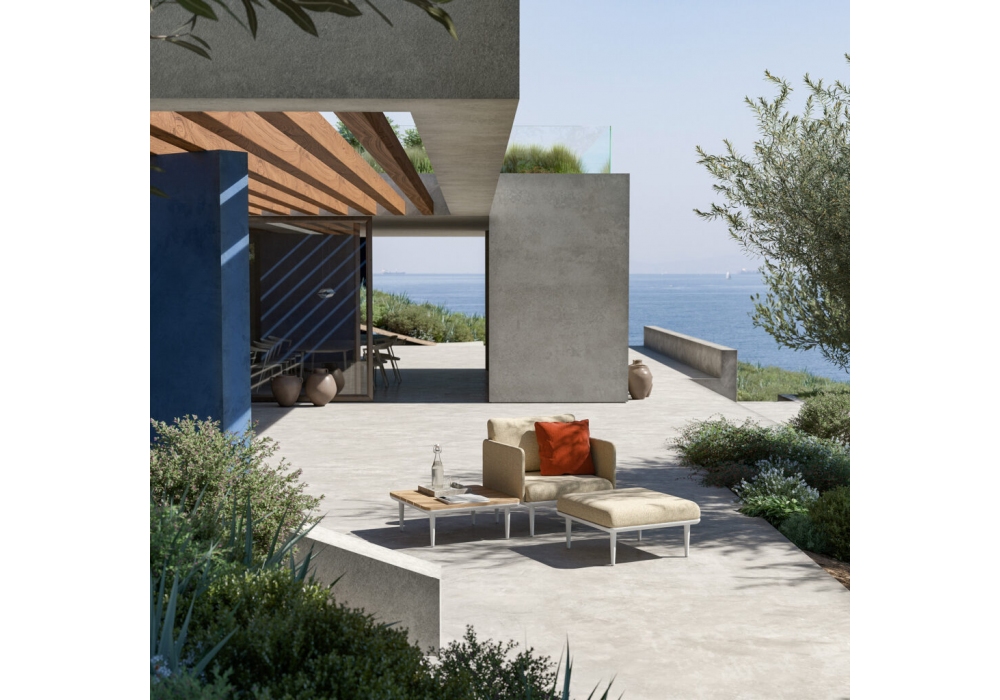 Styletto Lounge conçu par Kris Van Puyvelde pour Royal Botania est un fauteuil d'extérieur avec structure en aluminium et coussins avec rembourrage en différentes finitions.