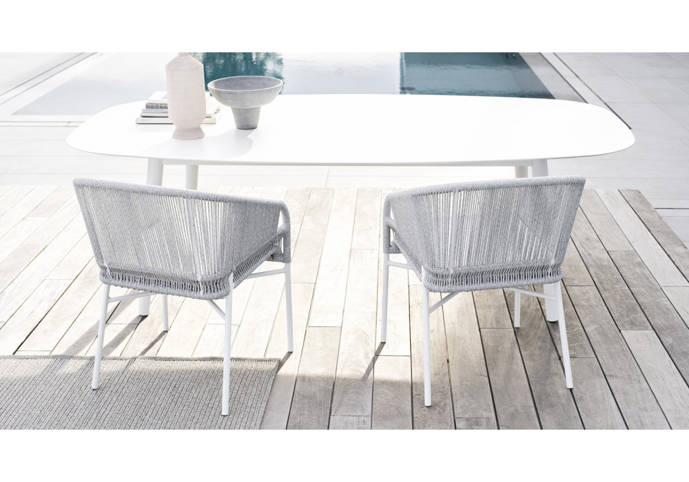 Cricket conçu par Anki Gneib pour Varaschin est un fauteuil tissé à la main en fibre synthétique avec structure en aluminium enduit de poudre. Disponible en différentes finitions. Coussin en option.