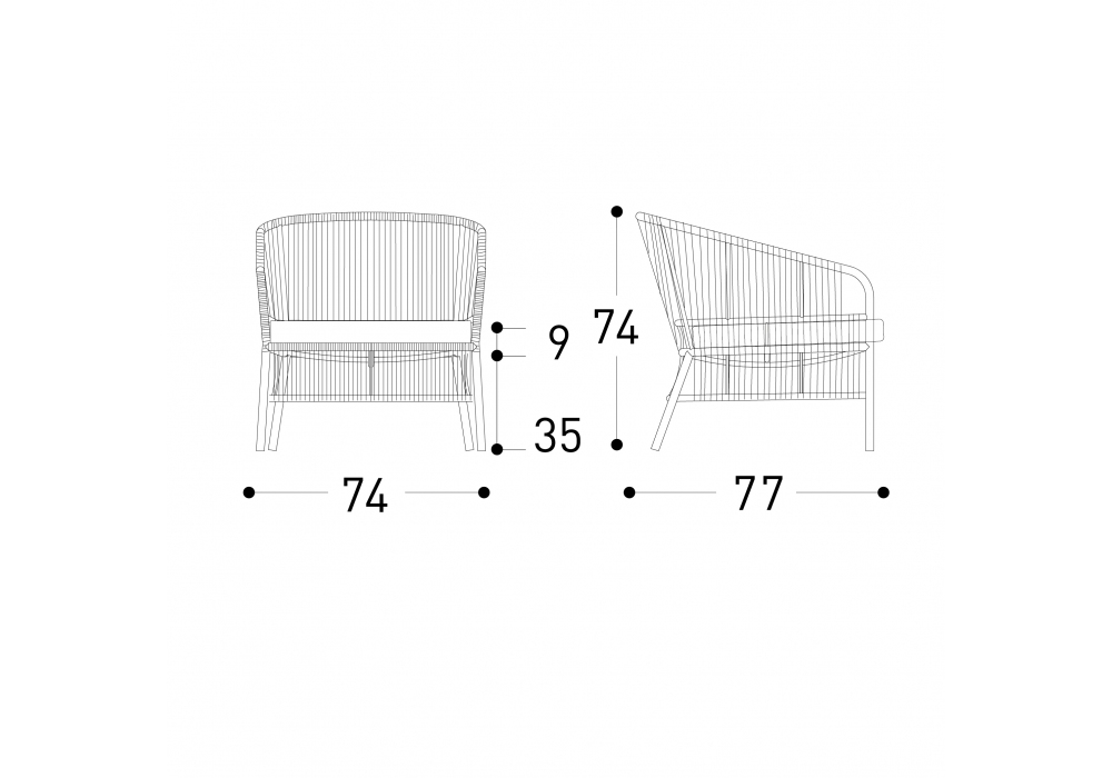 | Dimensions | - 74 x 77 x H 74 cm |