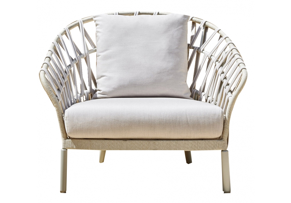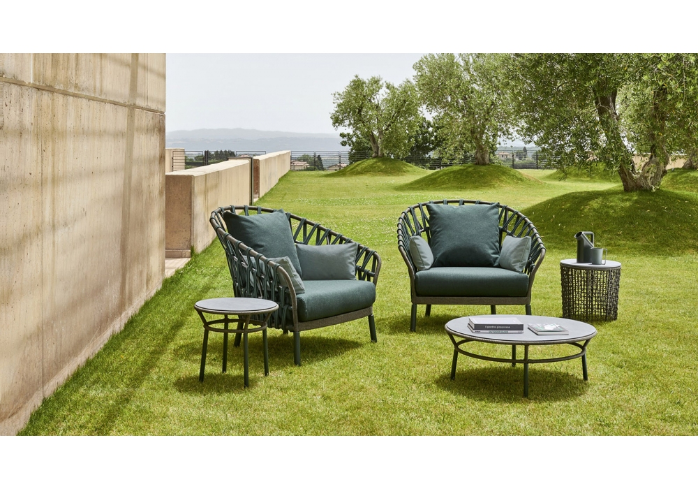 Emma Cross conçu par Monica Armani pour Varaschin est un fauteuil avec base en aluminium enduit de poudre. Structure en aluminium enduit de poudre entrelacée avec une bande de tissu acrylique. Rembourrage des sièges en tissu e rembourrage en caoutchouc Dryfeel pour une utilisation en extérieur. Disponible en différentes finitions.