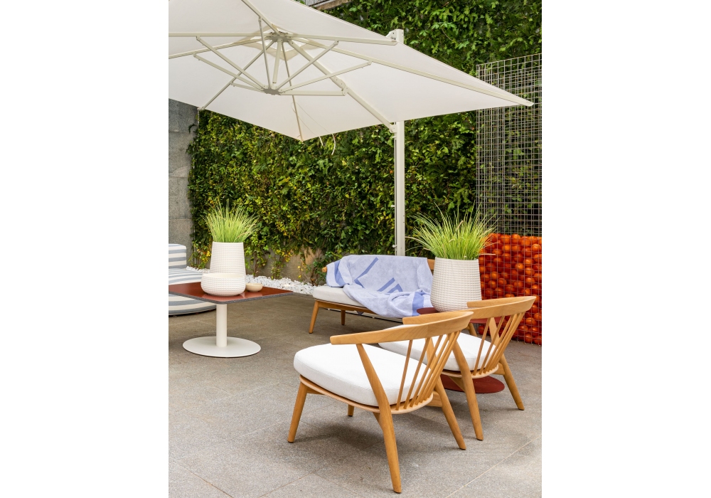 Newood Relax Lido conçu par Brogliato Traverso pour Cappellini est un fauteuil avec structure en iroko massif. Coussin de siège amovible avec doublure intérieure hydrofuge et housse amovible en tissu outdoor.