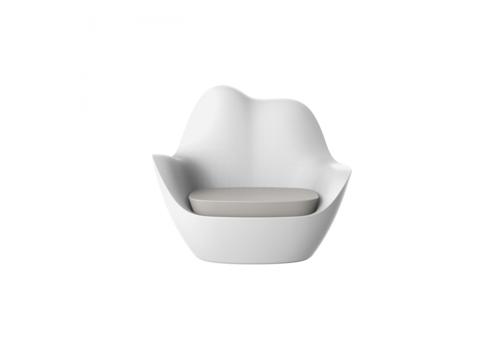 Sabinas conçu par Javier Mariscal pour Vondom est un fauteuil réalisé en résine de polyéthylène par rotomoulage et coussin d'assise en tissu. 100% recyclable. Article adapté à une utilisation intérieure et extérieure. Disponible en différentes finitions.
