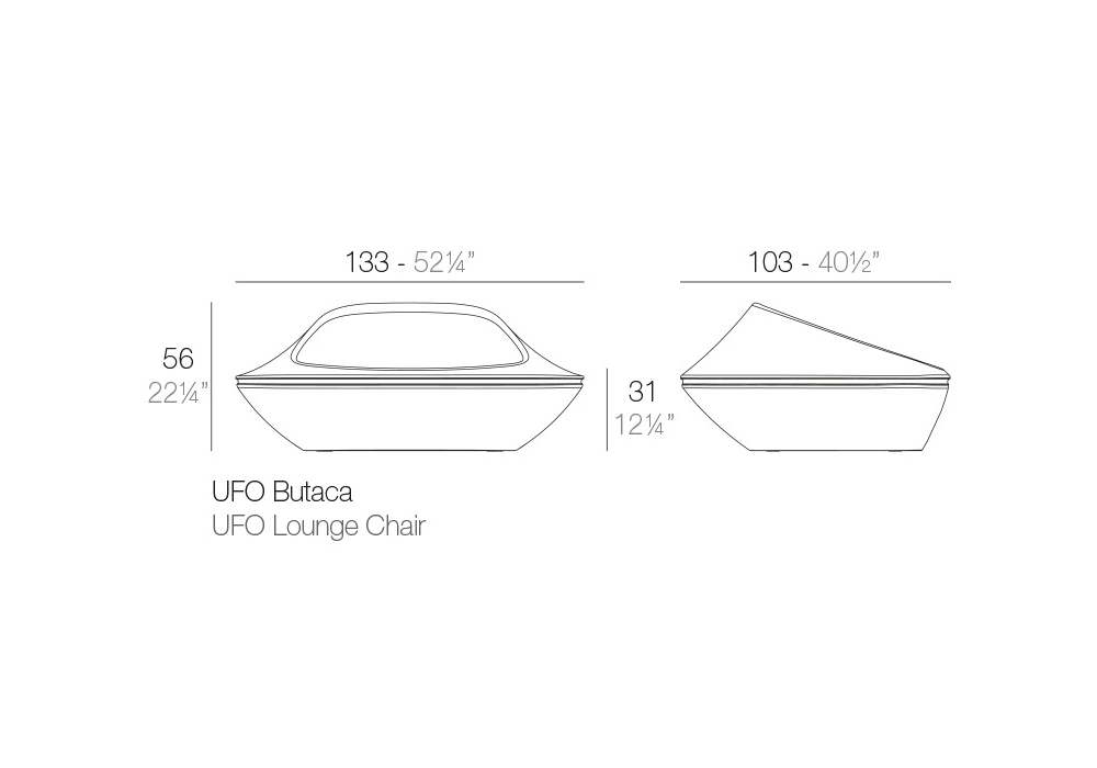 Ufo conçu par Ora Ïto pour Vondom est un fauteuil réalisé en résine polyéthylène par rotomoulage. 100% recyclable. Article adapté à une utilisation intérieure et extérieure. Disponible en différentes finitions. Coussin d'assise sur demande.