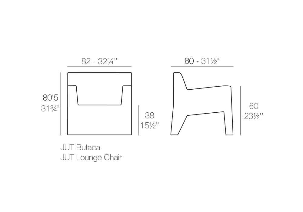 Jut conçu par Vondom est un fauteuil réalisé en résine de polyéthylène par rotomoulage. 100% recyclable. Article adapté à une utilisation intérieure et extérieure. Disponible en différentes finitions. Coussin d'assise sur demande.