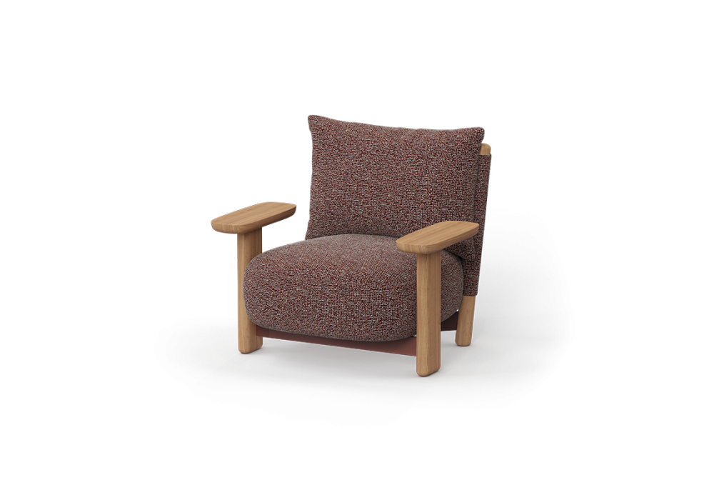 Milos Wood Lounge Chair conçu par Jean Marie Massaud pour Vondom est un fauteuil réalisé avec une structure en bois et des coussins d'assise et de dossier recouverts de tissu.