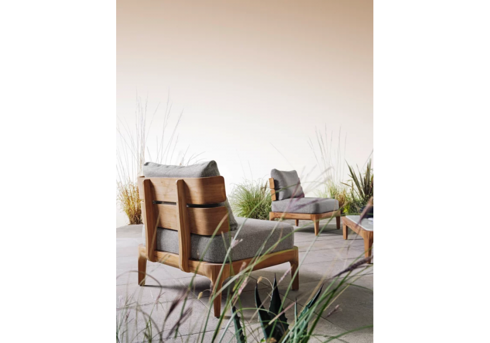 Mediterraneo conçu par Francesco Meda pour Gervasoni est un fauteuil réalisé avec structure en teck et revêtement en tissu déhoussable.