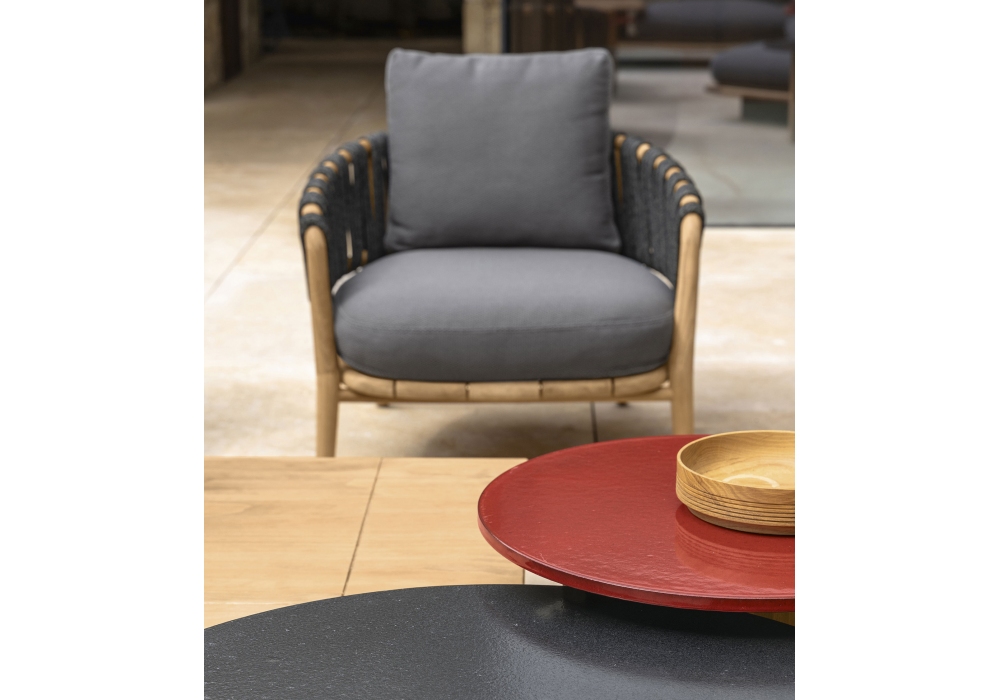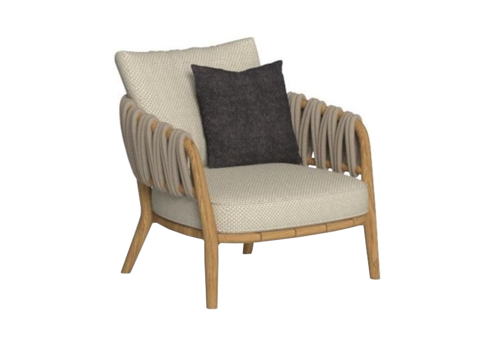 Venice conçu par Ludovica + Roberto Palomba pour Talenti est un fauteuil en bois, assise et dossier rembourrés et recouverts de tissu.
