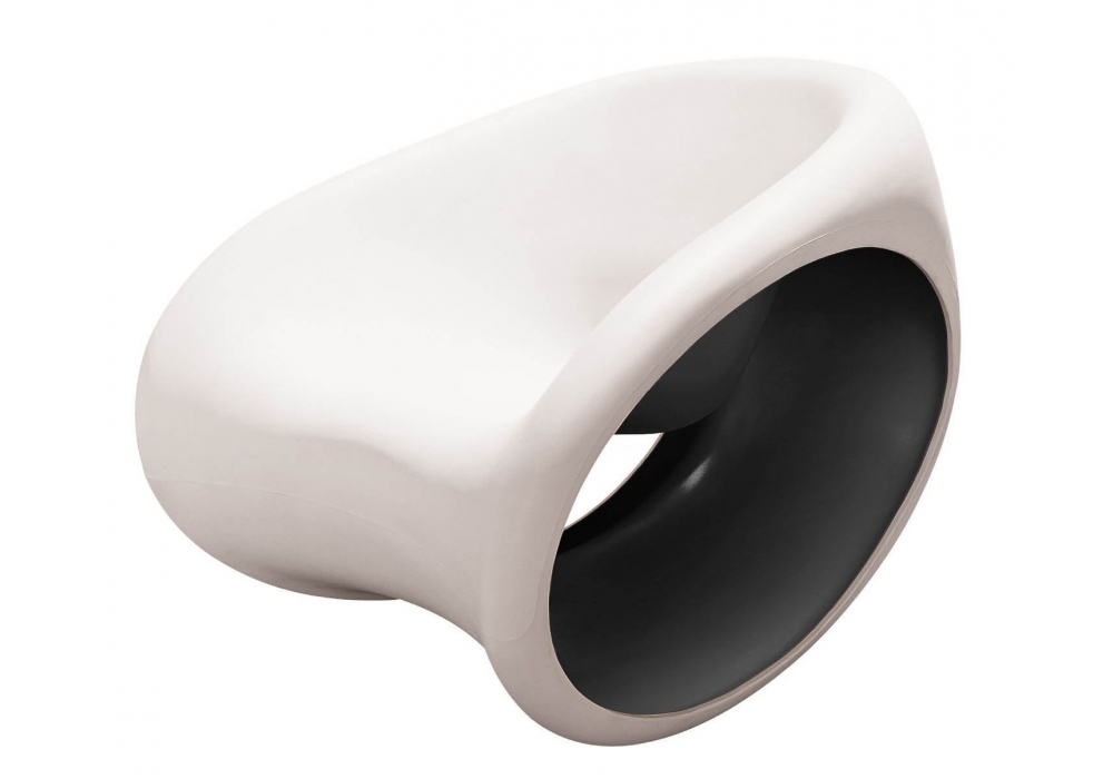 MT3 conçu par Italo Rota pour Driade est un fauteuil monobloc en polyéthylène blanc sable (RAL 1013) à l'extérieur et rouge ou noir à l'intérieur. Utilisation intérieure/extérieure.