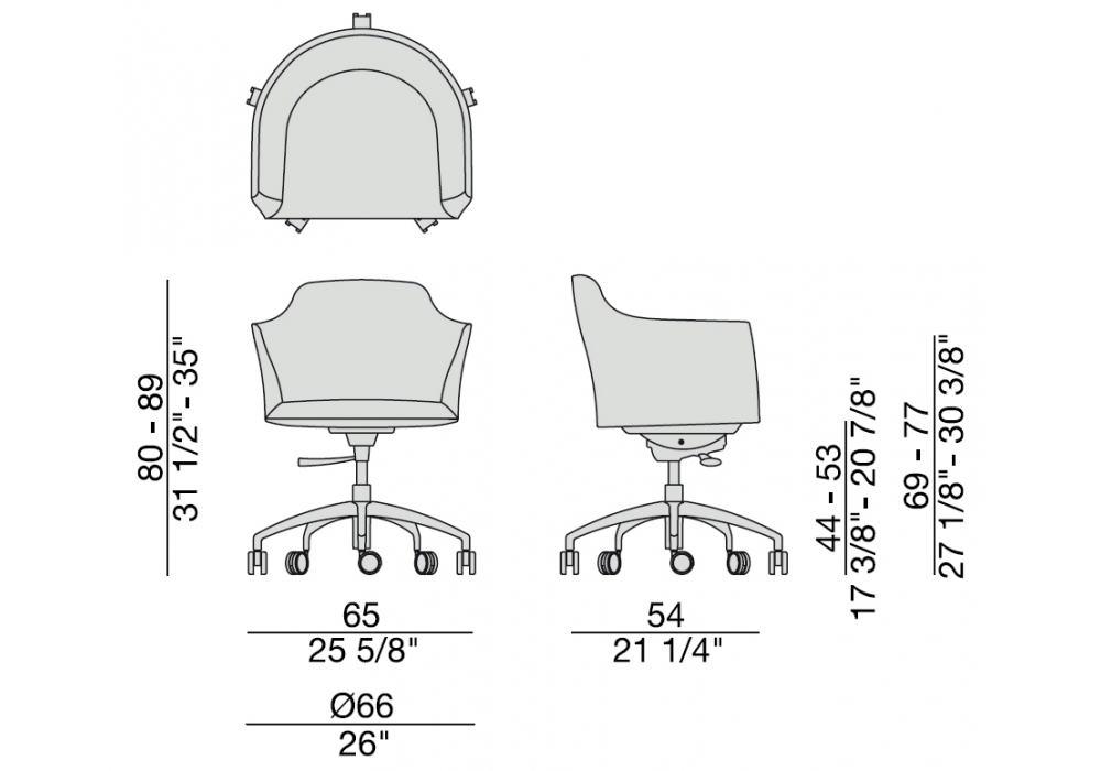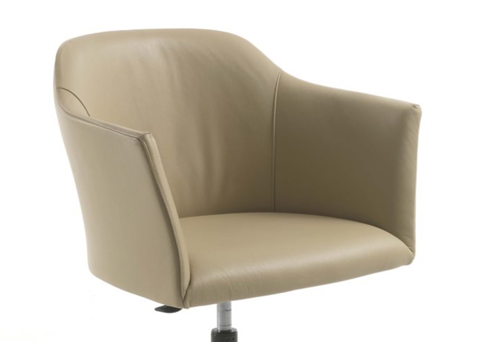 Heather conçu par Gino Carollo pour Porada est un fauteuil pivotante avec base en métal, roues à cinq branches, et revêtement en tissu ou cuir. Parfait pour tout type de bureau.